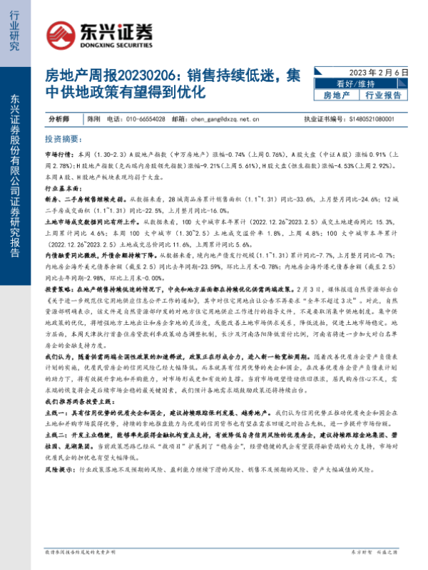 【东兴证券】【20230206】房地产周报:销售持续低迷,集中供地政策有望得到优化-22页