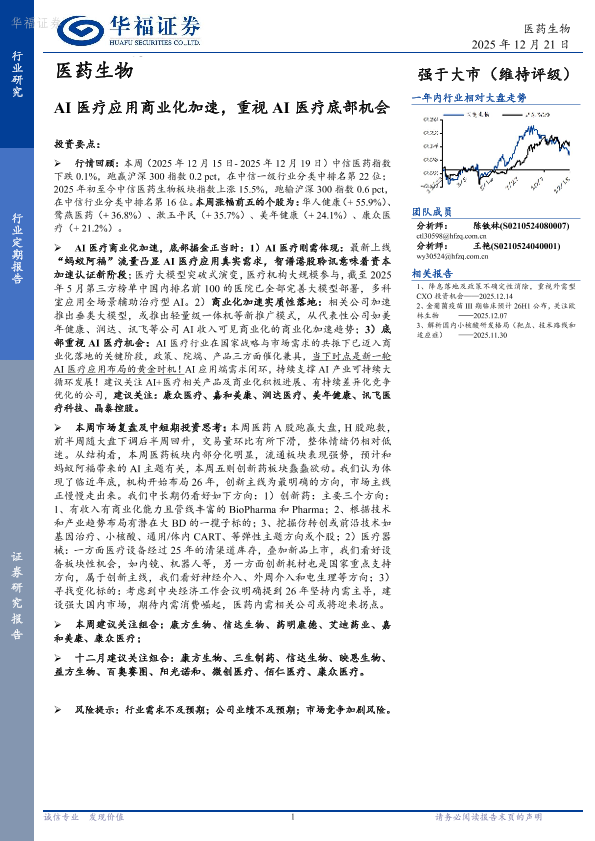 【华福证券】【202512】AI医疗应用商业化加速,重视 AI医疗底部机会-19页