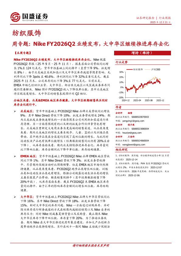 【国盛证券】【202512】Nike FY2026Q2业绩发布,大中华区继续推进库存去化-15页