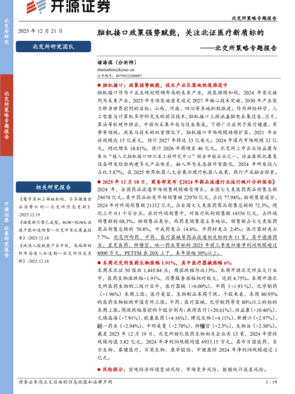 【开源证券】【202512】脑机接口政策强势赋能,关注北证医疗新质标的——北交所策略专题报告-19页