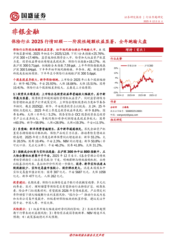 【国盛证券】【2025】保险行业2025行情回顾——阶段性超额收益显著,全年跑输大盘-10页