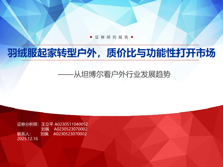 【产银万国证券毕疏】【2025】从坦博尔看户外行业发展趋势_羽绒服起家转型户外_质价比与功能性打开市场-36页