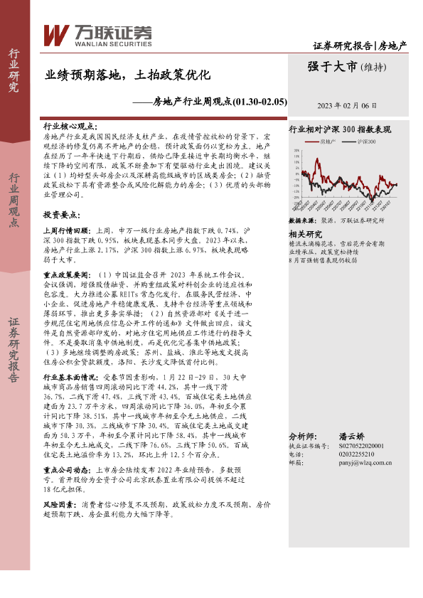 【万联证券】【20230206】房地产行业周观点:业绩预期落地,土拍政策优化-18页