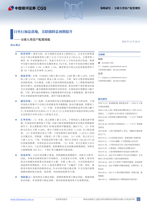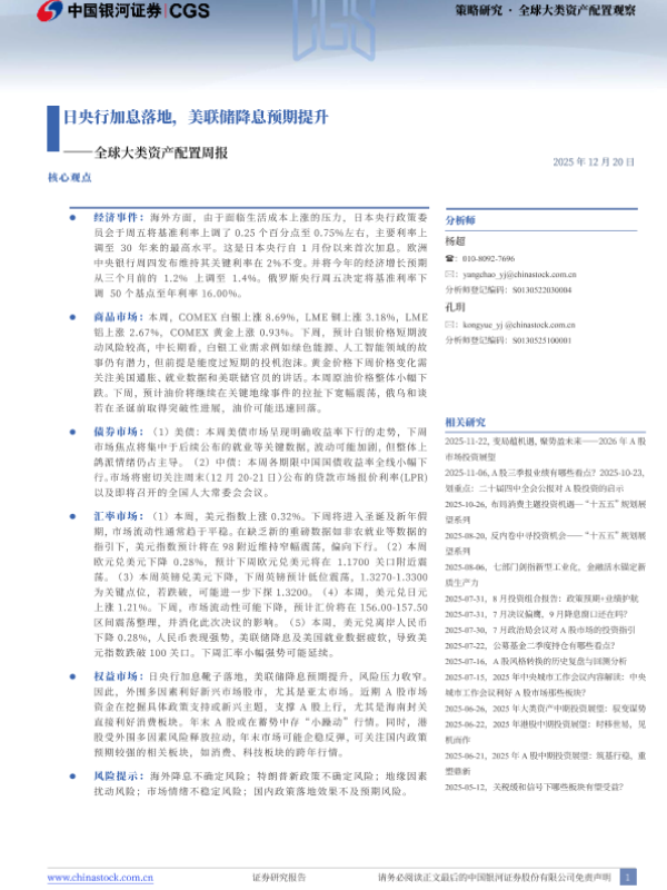 【银河证券】【202512】全球大类资产配置周报:日央行加息落地,美联储降息预期提升-13页