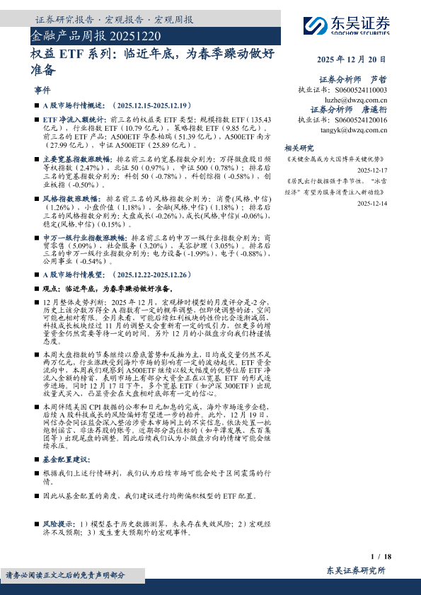 【东吴证券】【202512】金融产品周报 20251220 权益 ETF系列:临近年底,为春季躁动做好准备-18页
