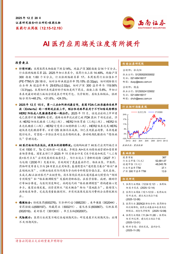 【西南证券】【202512】AI医疗应用端关注度有所提升-28页