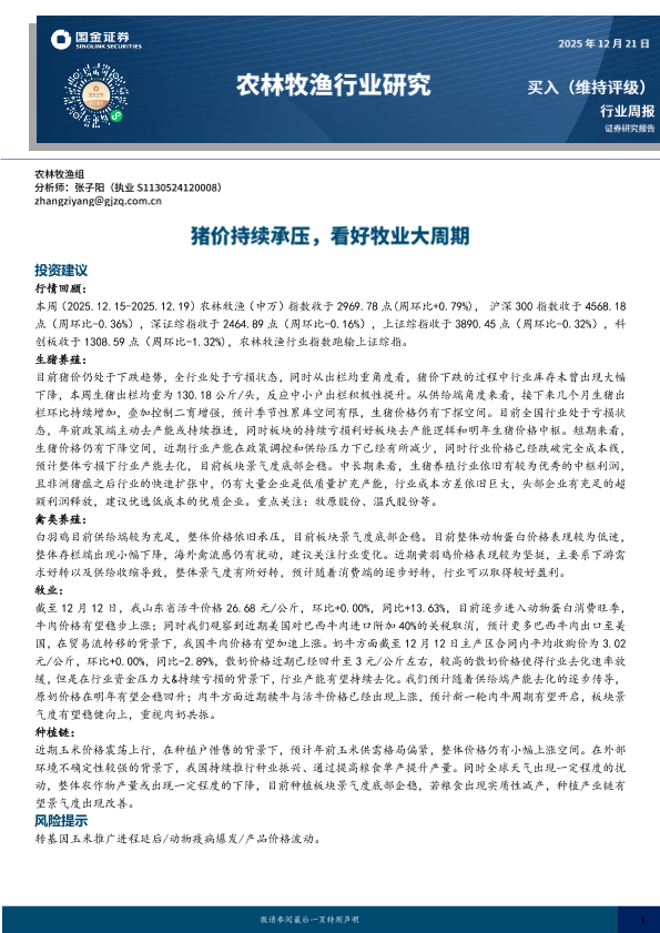 【国金证券】【202512】农林牧渔行业研究:猪价持续承压,看好牧业大周期-13页