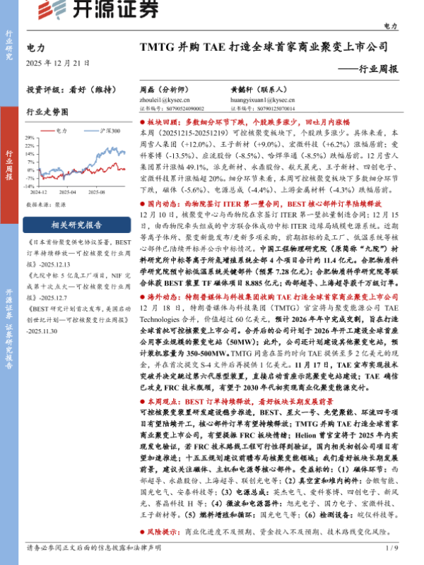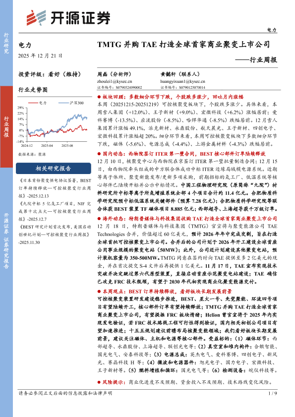 【开源证券】【202512】电力行业周报:TMTG并购TAE打造全球首家商业聚变上市公司-9页