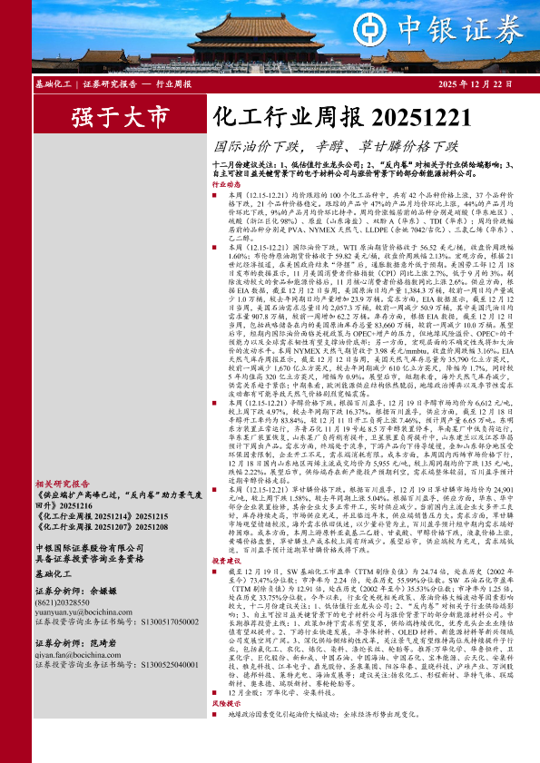草甘膦价格下跌 辛醇价格下跌 国际油价下跌 低估值龙头公司 电子材料