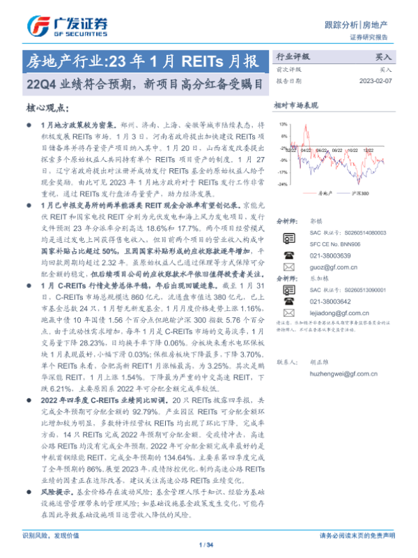 【广发证券】【20230207】房地产行业:23年1月REITs月报:22Q4业绩符合预期,新项目高分红备受瞩目-34页