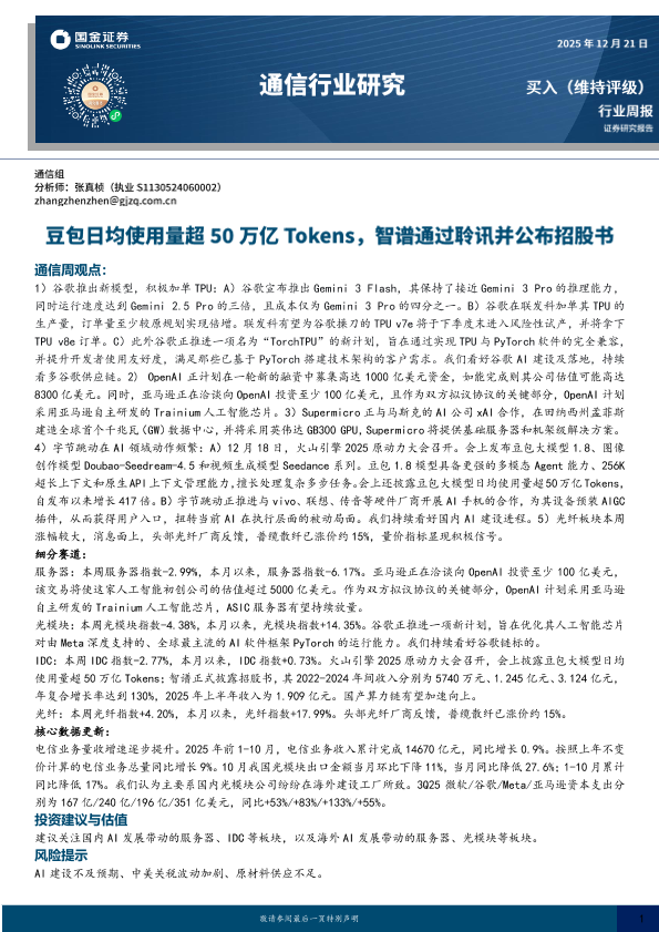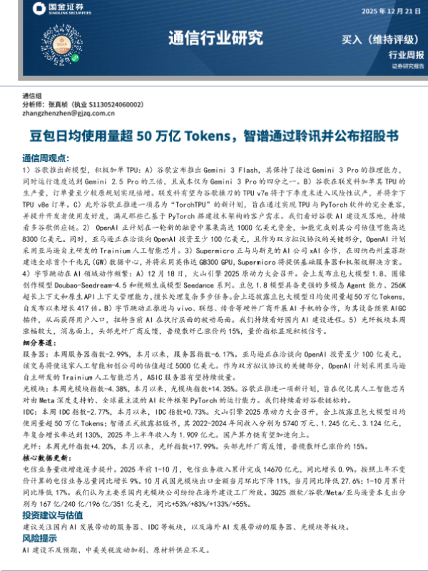【国金证券】【202512】通信行业研究:豆包日均使用量超50万亿Tokens,智谱通过聆讯并公布招股书-12页