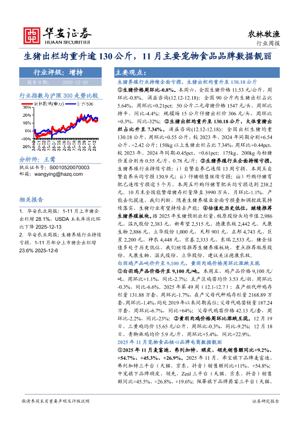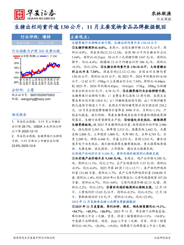 【华安证券】【202512】生猪出栏均重升逾130公斤,11月主要宠物食品品牌数据靓丽-41页