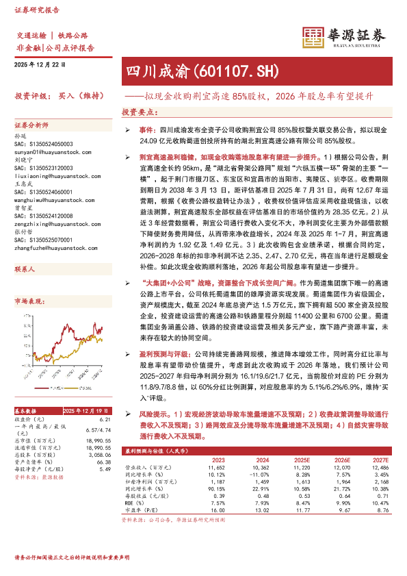 【华源证券】【202512】拟现金收购荆宜高速85%股权,2026年股息率有望提升-3页