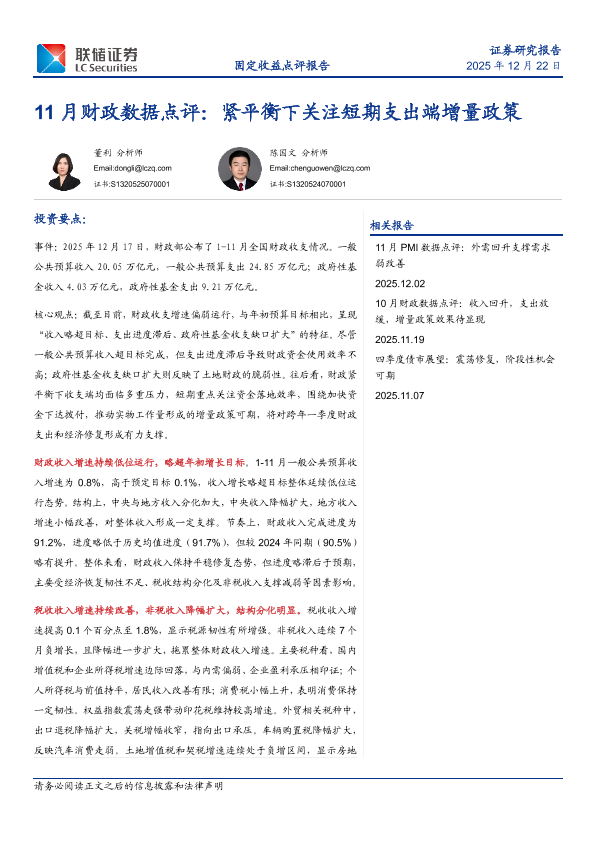 【联储证券】【202512】11月财政数据点评:紧平衡下关注短期支出端增量政策-6页