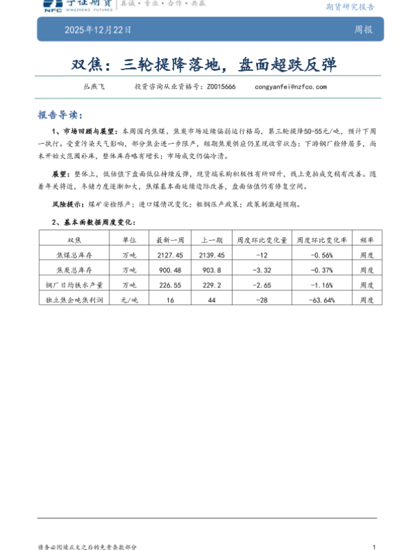 【宁证期货】【202512】双焦:三轮提降落地,盘面超跌反弹-5页