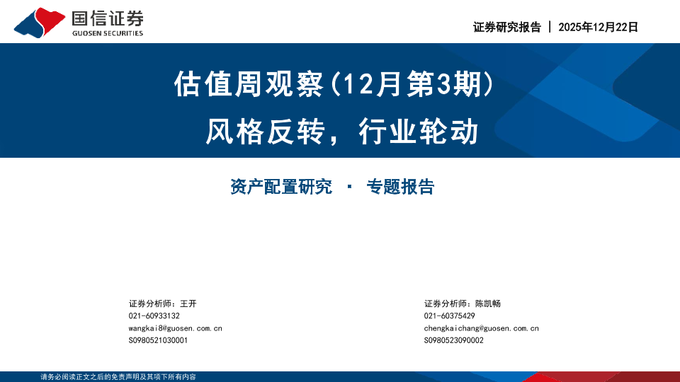 【国信证券】【202512】估值周观察(12月第3期)风格反转,行业轮动-27页