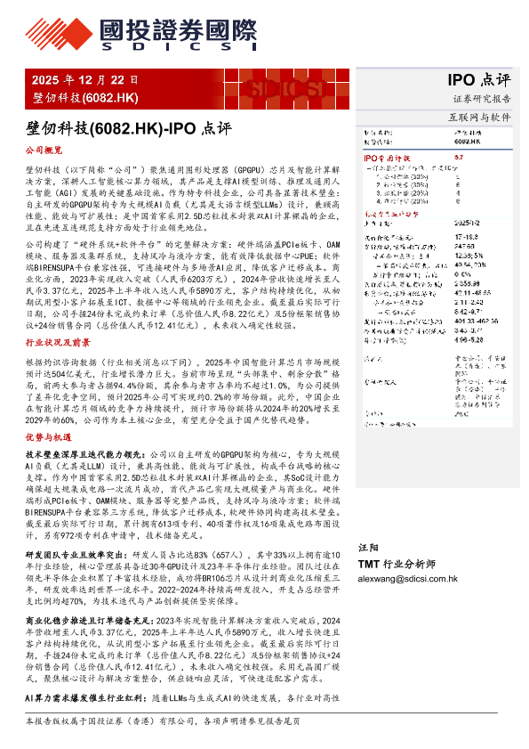 【国投证券(香港)有限公司】【202512】壁仞科技(6082.HK)-IPO点评-4页