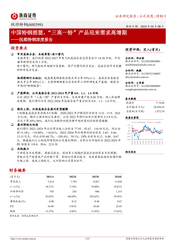 【浙商证券】【20230208】抚顺特钢深度报告:中国特钢摇篮,“三高一特”产品迎来需求高增期-25页