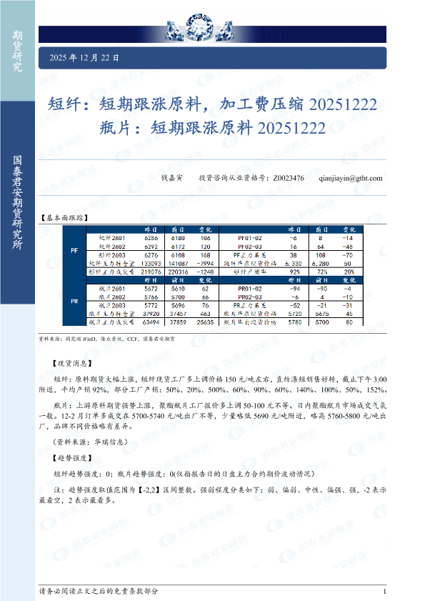【国泰君安期货】【202512】短纤_短期跟涨原料_加工费压缩_瓶片_短期跟涨原料-2页