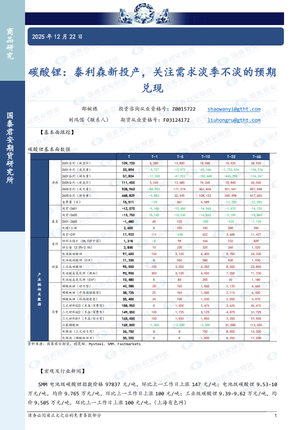 【国泰君安期货】【202512】碳酸锂:泰利森新投产,关注需求淡季不淡的预期兑现-3页