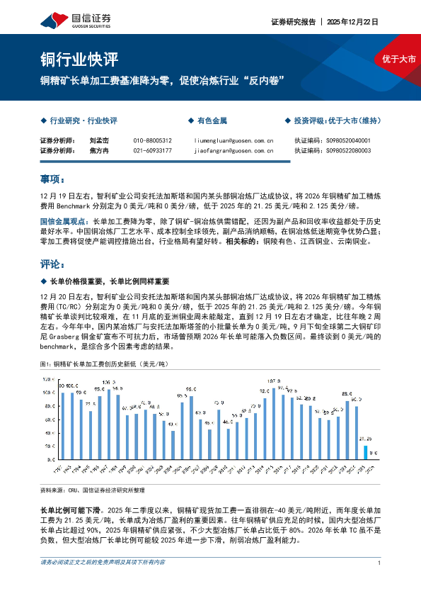 【国信证券】【202512】铜精矿长单加工费基准降为零,促使冶炼行业“反内卷”-6页
