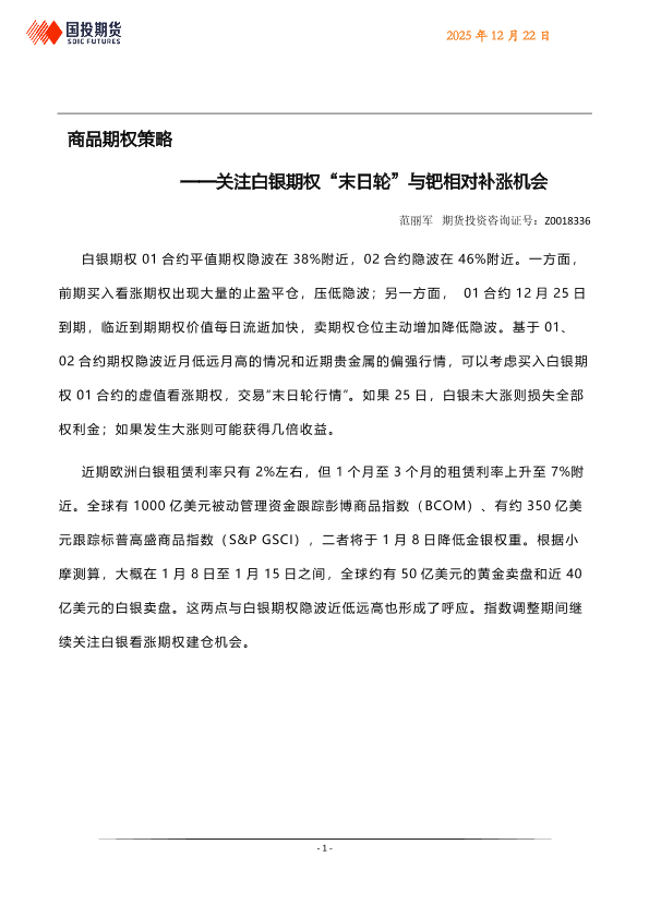 【国投期货】【202512】商品期权策略——关注白银期权“末日轮”与钯相对补涨机会-4页