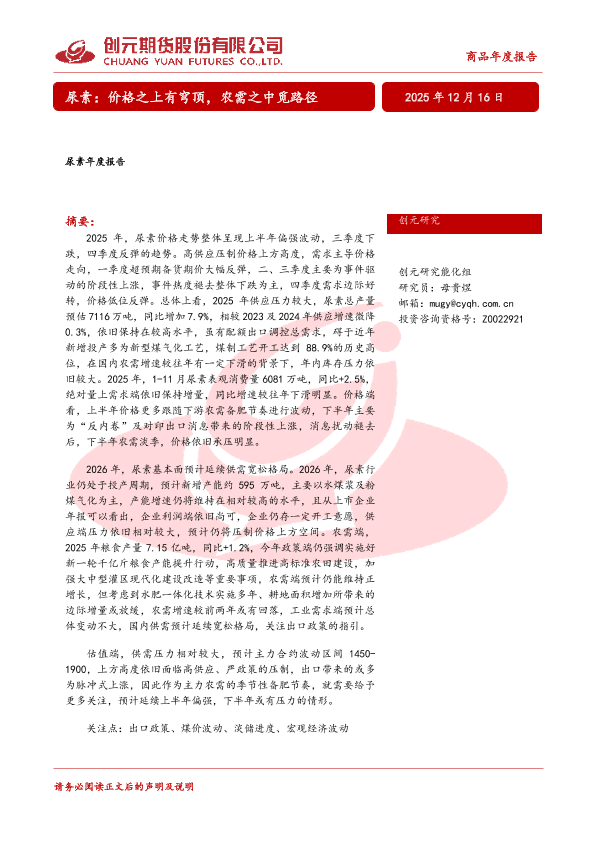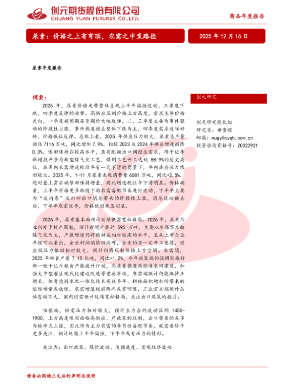 【创元研究】【202512】尿素:价格之上有穹顶,农需之中觅路径-25页
