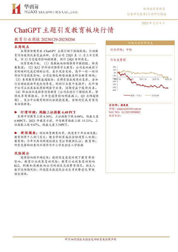 【华西证券】【20230204】教育行业周报:ChatGPT主题引发教育板块行情-14页