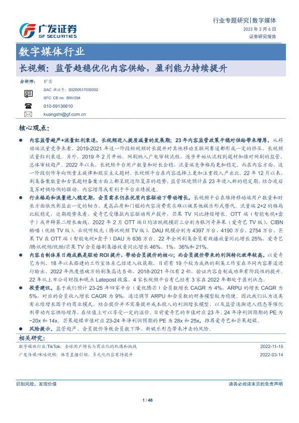 【广发证券】【20230206】数字媒体行业行业专题研究:长视频:监管趋稳优化内容供给,盈利能力持续提升-48页
