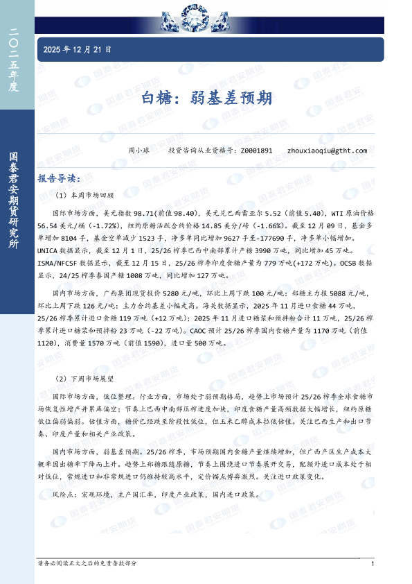 【国泰君安期货】【202512】白糖:弱基差预期-8页