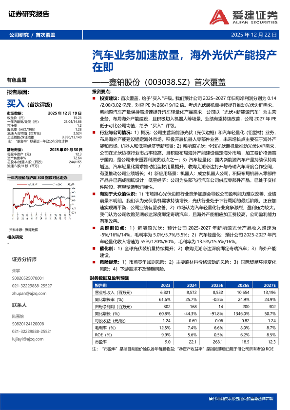 【爱建证券】【202512】汽车业务加速放量,海外光伏产能投产在即——鑫铂股份(003038.SZ)首次覆盖-6页