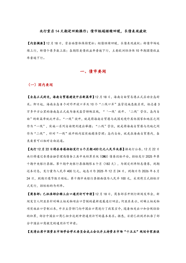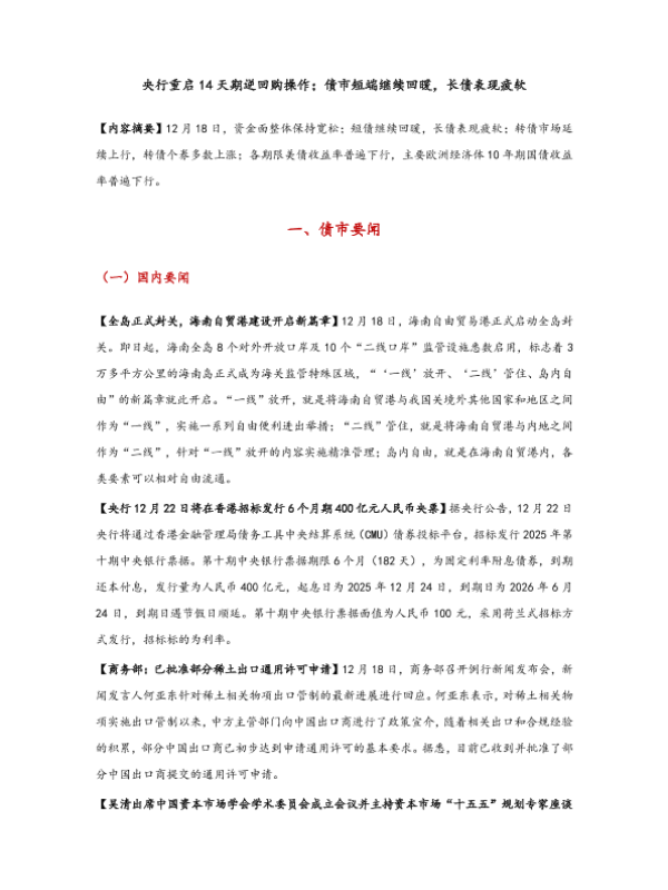 【东方金诚】【202312】央行重启14天期逆回购操作;债市短端继续回暖_长债表现疲软-8页