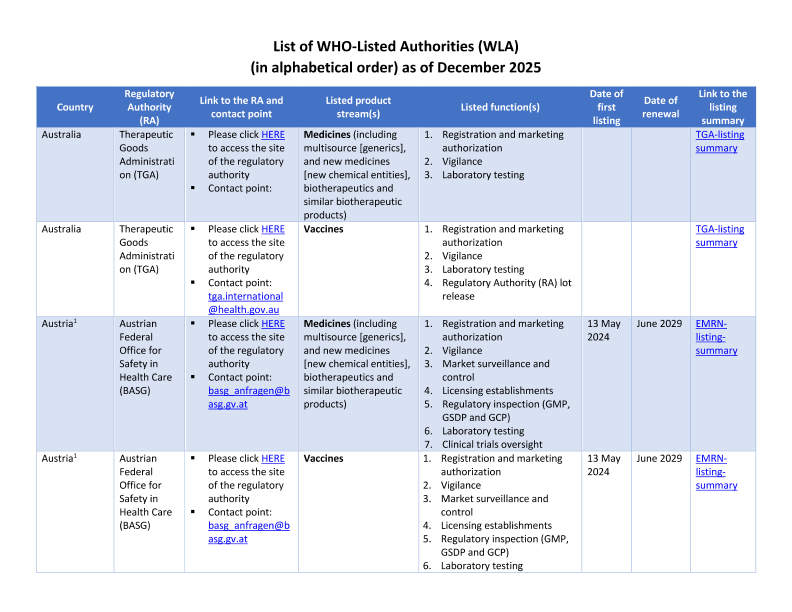 【世界卫生组织】【2025】List of WHO-Listed Authorities (WLA)-24页