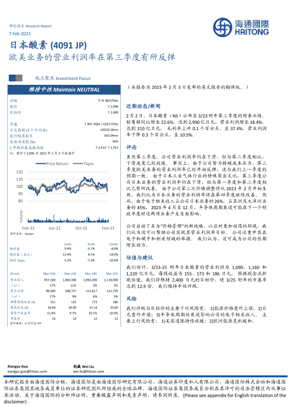 【海通国际】【20230207】欧美业务的营业利润率在第三季度有所反弹-16页