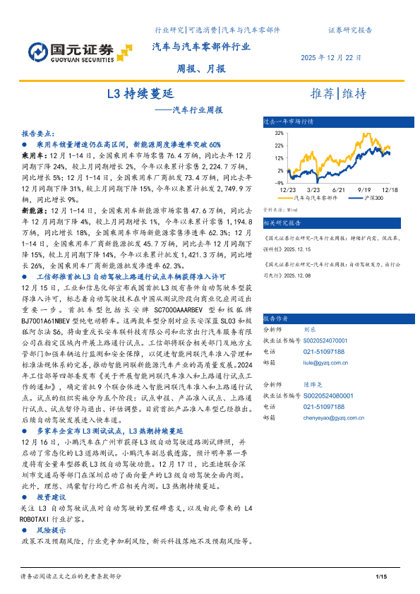 【国元证券】【202512】L3持续蔓延——汽车行业周报-15页
