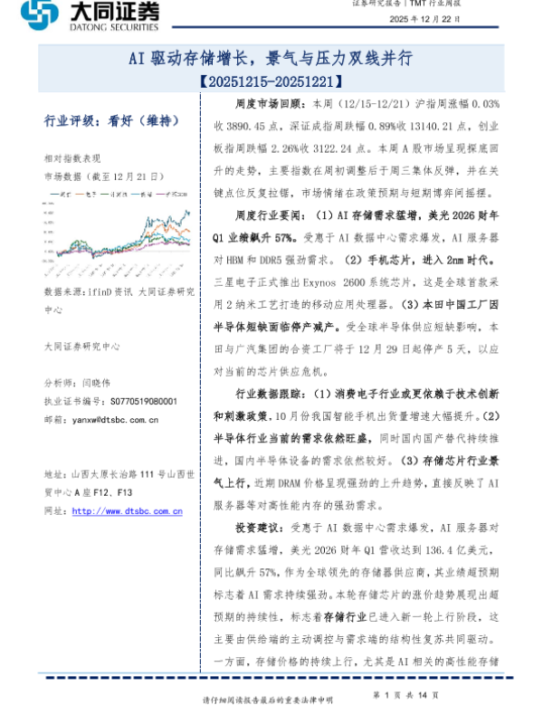 【大同证券研究中心】【202512】AI驱动存储增长,景气与压力双线并行-14页