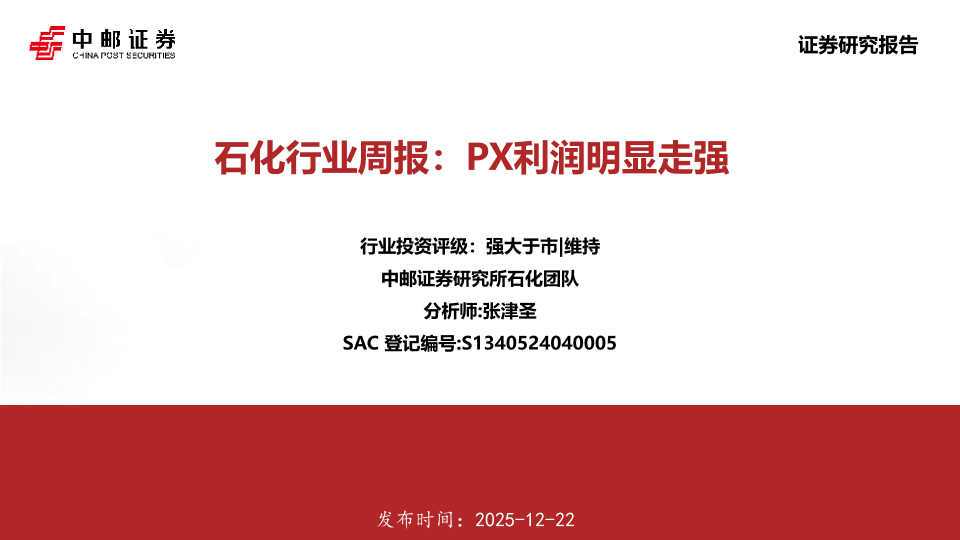 【中邮证券】【202512】石化行业周报:PX利润明显走强-16页