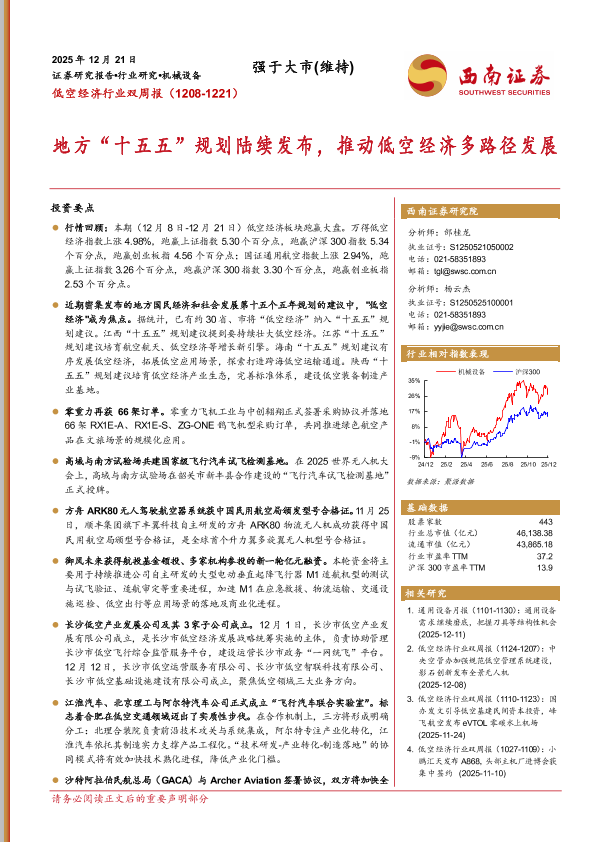 【西南证券】【202512】地方“十五五”规划陆续发布,推动低空经济多路径发展-12页