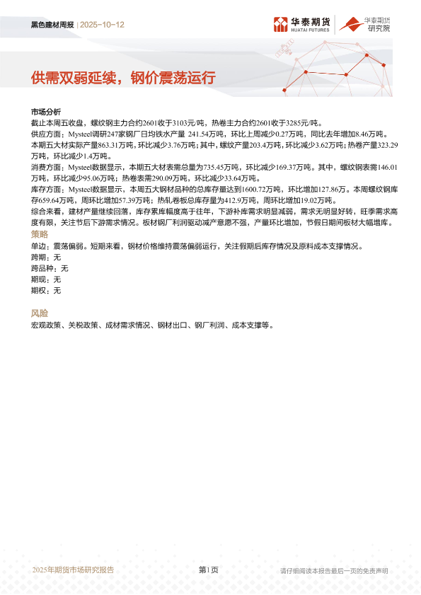 【华泰期货】【202510】黑色建材周报 | 供需双弱延续,钢价震荡运行-10页