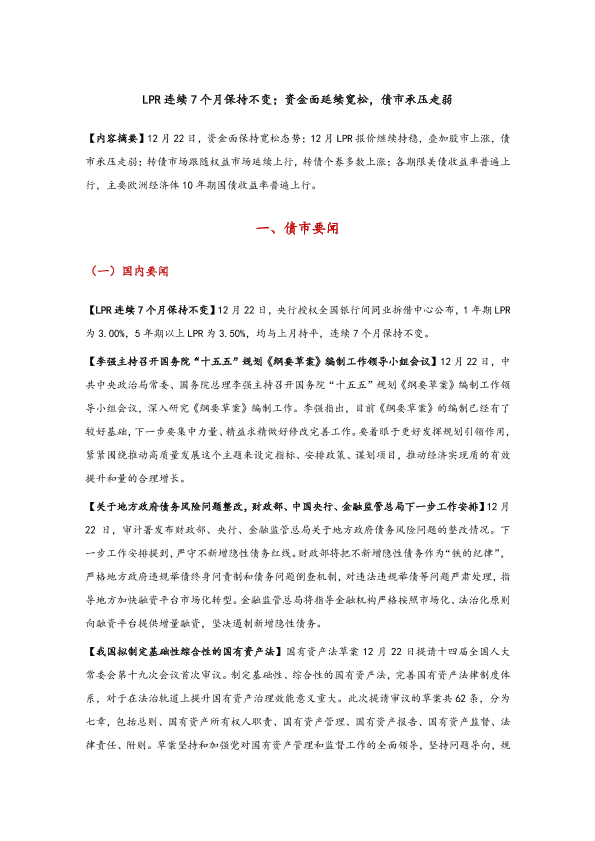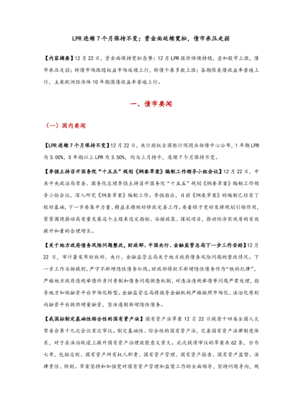 【东方金诚】【202312】LPR连续7个月保持不变;资金面延续宽松,债市承压走弱-7页