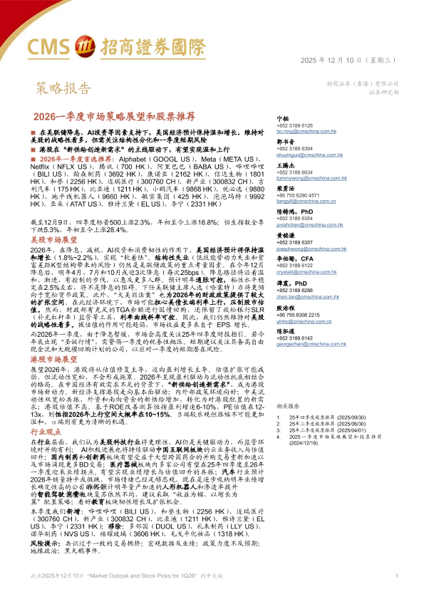 【招商证券国际】【202512】2026一季度市场策略展望和股票推荐-31页