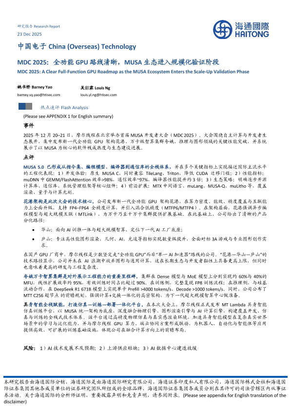 【海通国际】【202512】中国电子 MDC 2025:全功能 GPU路线清晰,MUSA生态进入规模化验证阶段-10页