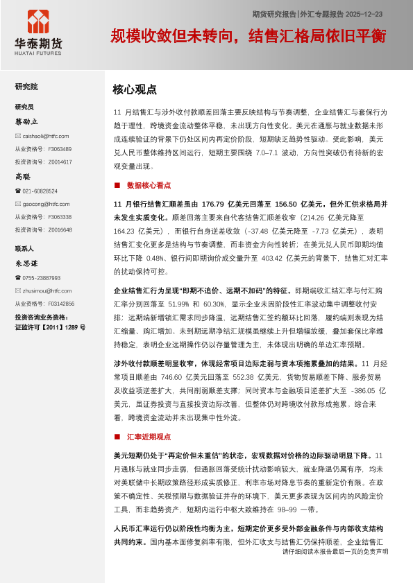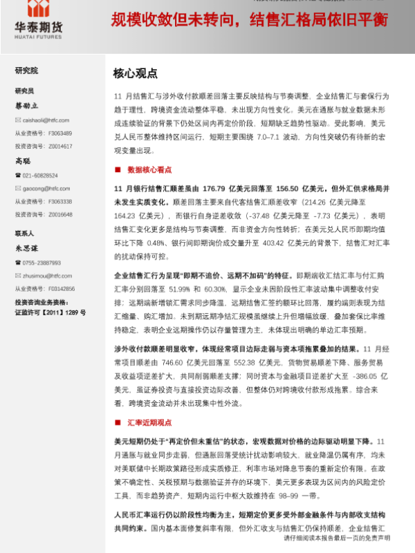 【华泰期货】【202311】规模收敛但未转向,结售汇格局依旧平衡-11页