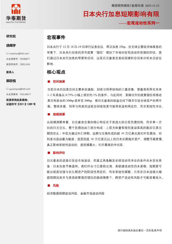【华泰期货】【202412】日本央行加息短期影响有限-14页