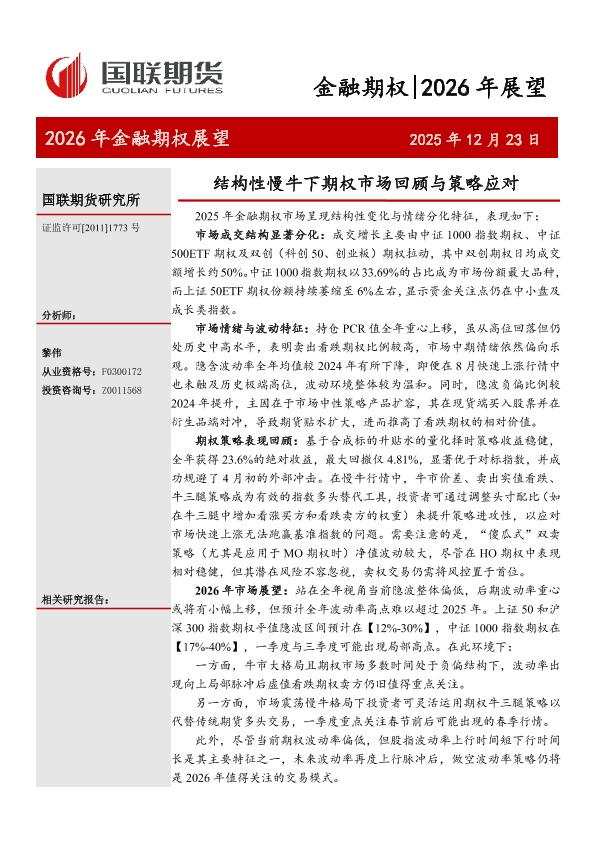 【国联期货研究所】【202512】2026年金融期权市场呈现结构性变化与情绪分化特征-28页