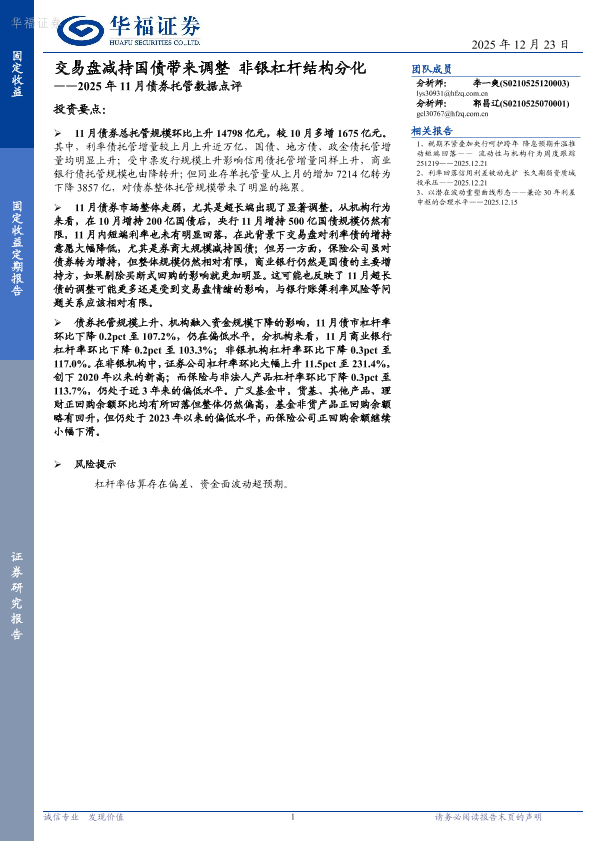 【华福证券】【202511】2025年 11月债券托管数据点评——交易盘减持国债带来调整非银杠杆结构分化-11页