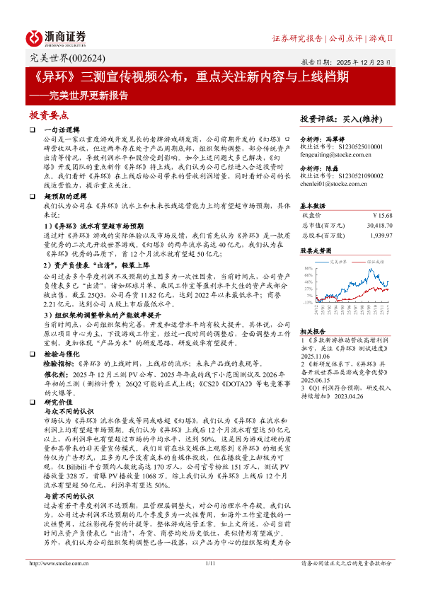 【浙商证券】【202512】完美世界更新报告——《异环》三测宣传视频公布,重点关注新内容与上线档期-11页
