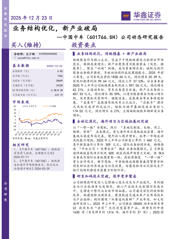 【华鑫证券】【202512】业务结构优化,新产业破局—中国中车(601766.SH)公司动态研究报告-5页