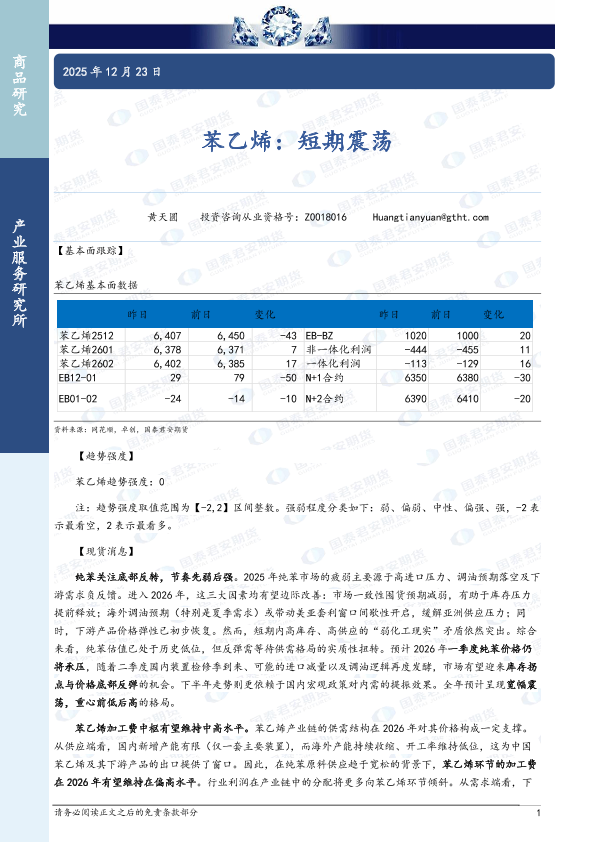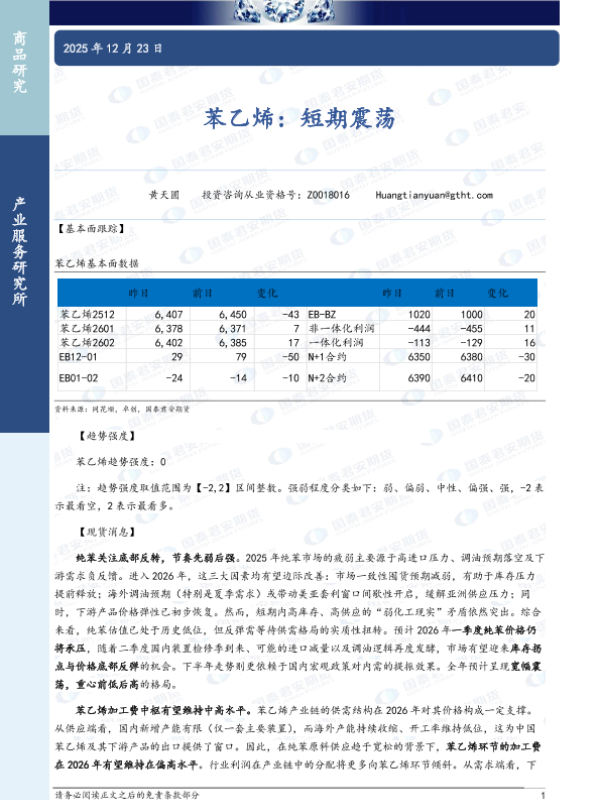 【国泰君安期货】【202512】苯乙烯:短期震荡-3页