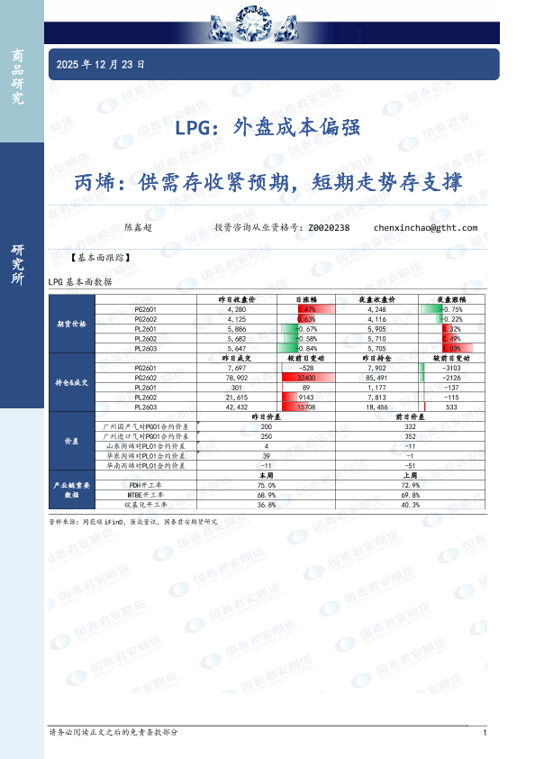 【国泰君安期货】【202512】LPG:外盘成本偏强 丙烯:供需存收紧预期,短期走势存支撑-4页